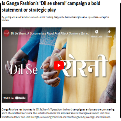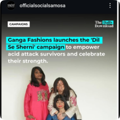 To amplify the impact, Ganga pledged 10% of the Sherni collection’s revenue to support these survivors. The campaign touched 4 million hearts across Instagram and YouTube, sparked media coverage nationwide, and ignited conversations about true beauty and empowerment.